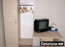 Pokoje wyposażone są w pojedyncze tapczany, stolik, krzesła, czajnik i łazienki, telewizor.